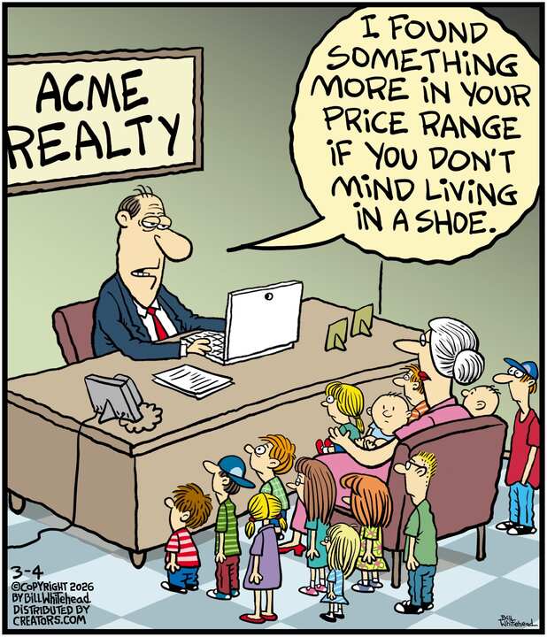 Bill’s career in cartooning started in the fifth grade, when he would copy drawings from comic strips, the New Yorker magazine and editorial cartoons. After a while he developed his own style, focusing primarily on the drawing. He soon realized his characters would need something to do and say, so he gave them their own odd little world to live in. Soon everyone around him became fair game. By college, Bill was cartooning for the school paper. Later, he created posters for book and record stores and freelanced for the Saturday Evening Post, Advertising Age, the Boston Phoenix, Wall Street Journal and King Features. In the '80s, he syndicated Sidelines, a sports panel cartoon.