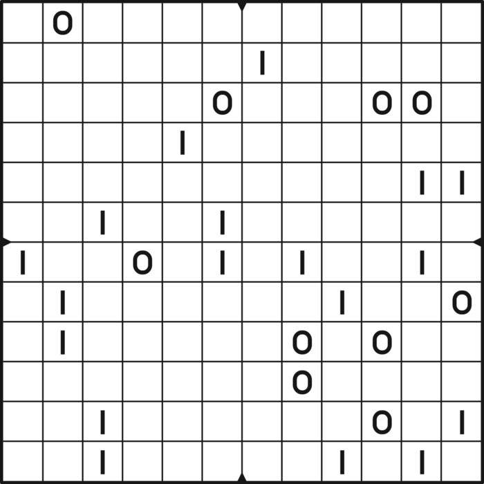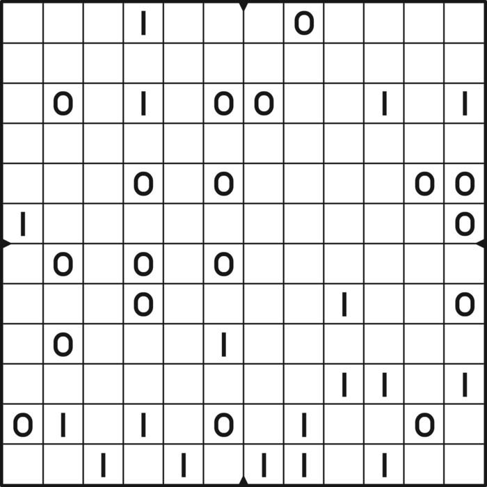 A daily binairo puzzle! Solve each puzzle with only 0's and 1's. Remember: No more than two the same numbers may be placed directly next to or below each other. Every row and every column must contain as many zeroes as ones. The combination of zeroes and ones in every row must be unique, as does the combination in each column.