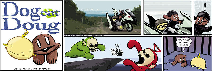 Written and illustrated by Brian Anderson, Dog Eat Doug began in 2004 as a webcomic. but in November 2005 it was picked up for syndication by Creators Syndicate.